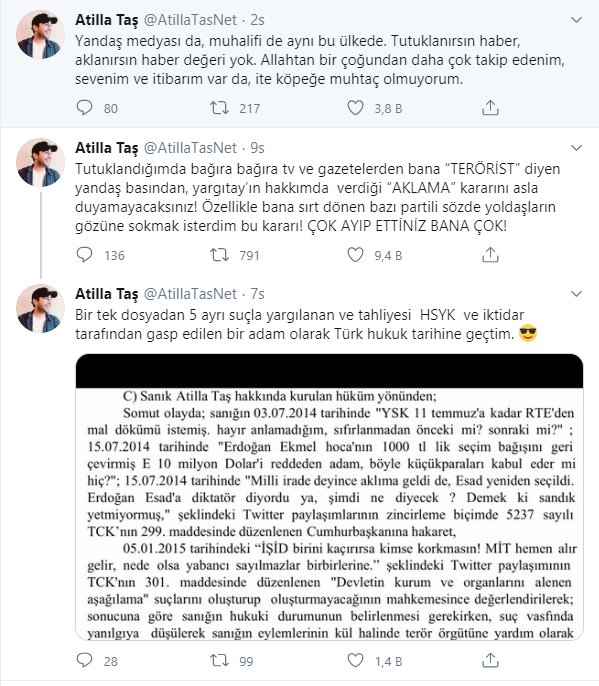 Beraat kararını sosyal medyadan duyuran Atilla Taş,