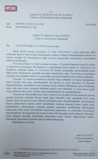 03.07.2020->Prof. Dr. Orhan Kural’ın Şikayetiyle Sıla’nın “Karanfil” Klibine Yasak Kararı!