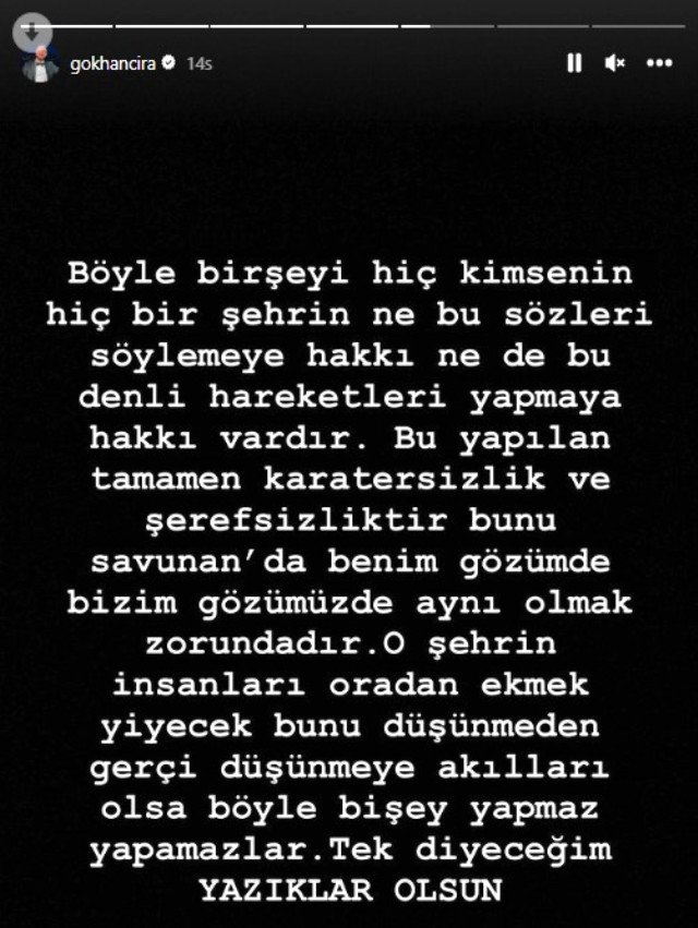 “Böyle bir şeyi hiç kimsenin, hiçbir şehrin ne bu sözleri söylemeye hakkı nede de bu denli hareketler yapmaya hakkı vardır. Bu yapılan tamamen karaktersizlik ve şerefsizliktir. Bunu savunan da benim gözde bizim gözümüzde aynı olmak zorundadır. O şehrin insanları oradan ekmek yiyecek bunu düşünmeden gerçi düşünmeye akılları olsa böyle bir şey yapmaz, yapamazlar. Tek diyeceğim yazıklar olsun” dedi.
