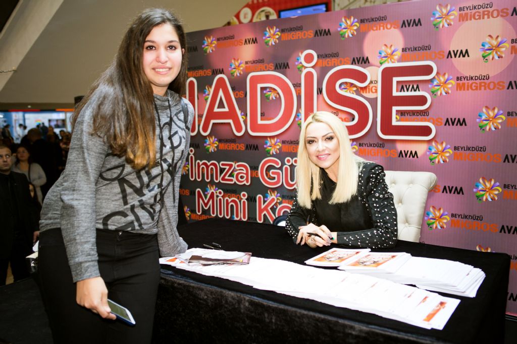 Söyleşinin ardından hayranlarıyla bir araya gelerek imza dağıtan Hadise, herkesle tek tek ilgilendi. Selfie isteklerini de geri çevirmeyen başarılı sanatçıya gördüğü ilgiden memnun kaldı.