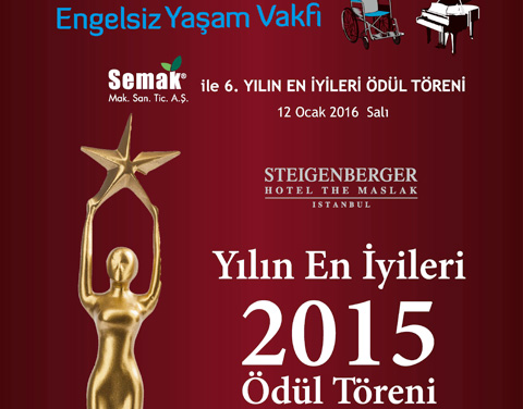 Vizyon Production tarafından organize edilen ve Semak Makine Sanayi Tic. AŞ.’nin ana sponsorluğunda 12 Ocak gecesi 6. kez gerçekleşecek olan Engelsiz Yaşam Vakfı “Yılın En İyileri” ödül töreni Steigenberger Hotel The Maslak’ta yapılacak.