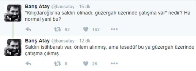 CHP Genel Başkanı Kemal Kılıçdaroğlu'nun konvoyu, Ardanuç ilçesine giderken özel harekat polisleri tarafından güvenlik gerekçesiyle durduruldu. Güzergahta çatışma çıktı. CHP konvoyuna da ateş açıldı. Kemal KIlıçdaroğlu güvenli bir bölgeye nakledildi. Sosyal medyada geniş yankı bulan olaya Barış Atay’dan da yorum geldi.