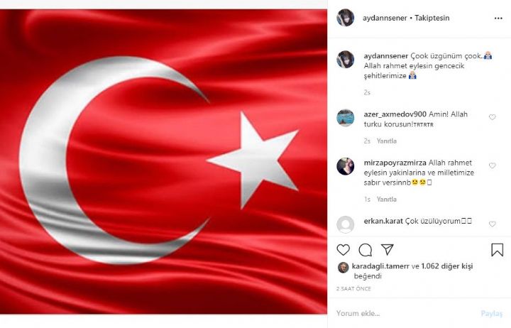 “Acımız çok büyük... Şehitlerimize Allah’tan rahmet yaralılarımıza acil şifalar olsun devletimizin milletimizin başı sağ olsun...”
