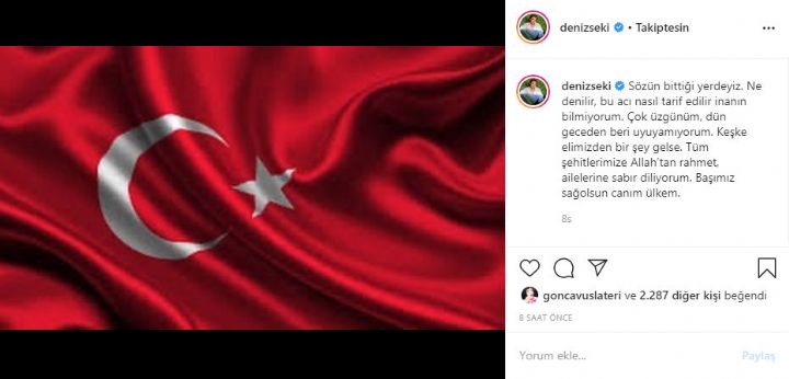 Türkiye’yi yasa boğan acıya ünlü isimler de sessiz kalmayarak yaşadığı acıyı sosyal medya hesaplarından paylaştı.