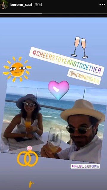 Evliliklerine kaldıkları yerden devam eden ikiliden Beren Saat DOĞULU, Instagram hesabının hikaye kısmından yaptığı paylaşımla evlilik yıldönümlerini kutladı ve her şeyin yolunda gittiği mesajını verdi.