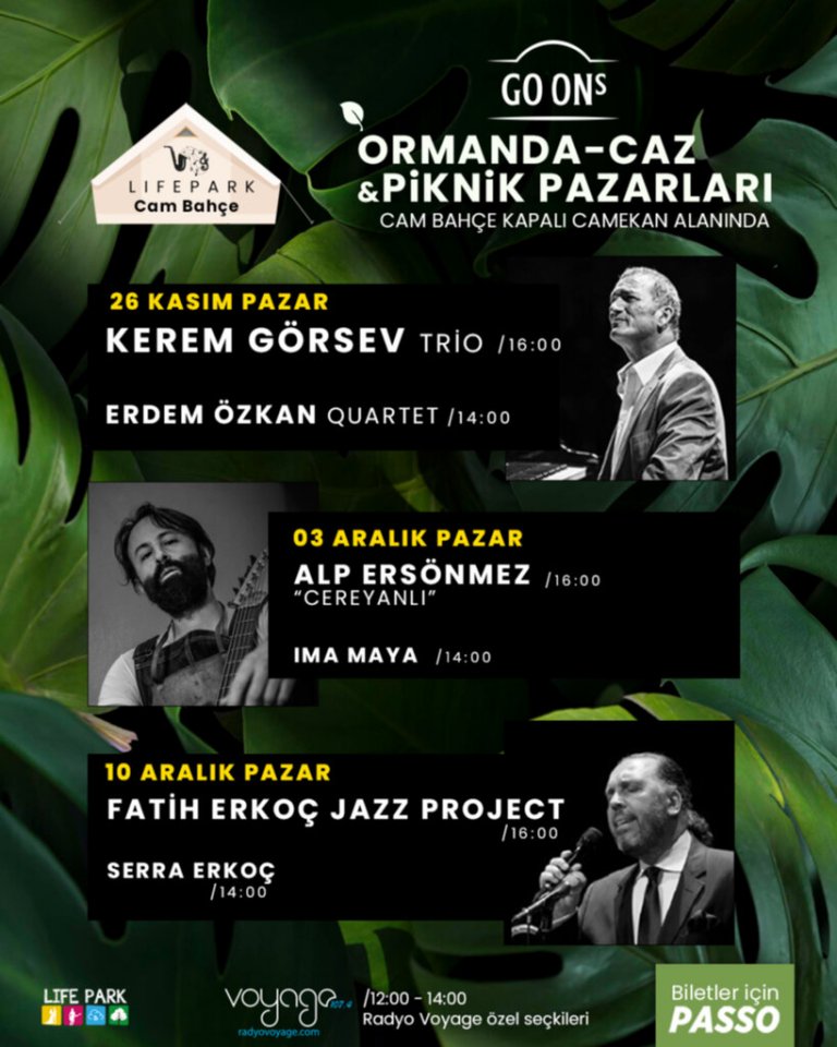 Cazın zarif notaları ve doğanın sakinleştirici etkisiyle hafızalarda kalıcı bir iz bırakmaya hazırlanan “Ormanda Caz & Piknik Etkinliği”ne katılmak için passo.com.tr üzerinden biletinizi hemen alabilir ve bu eşsiz deneyimin bir parçası olabilirsiniz. Müzik ve doğanın birleştiği bu etkinlik, pazar günlerinize yeni bir soluk getirecek!