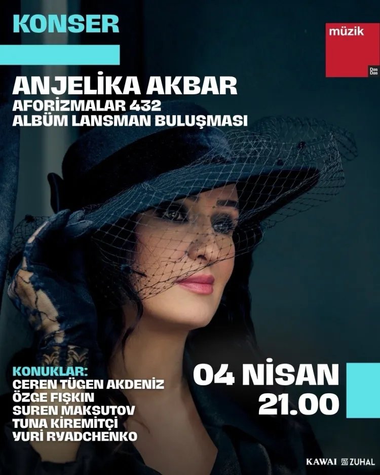 01.04.2026->Anjelika Akbar Yeni Albümü Aforizmalar 432’Nin Lansman Buluşması İle 4 Nisan Cumartesi Günü Ataşehir DasDas Alternatif Sahne’sinde!