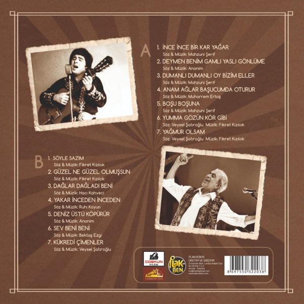 (1987 yılında Çoşkun Plak tarafından çıkarılan kaset albümün PLAK formatında [YENİ BASIMI]) A Yüzü: 1. İnce İnce Bir Kar Yağar